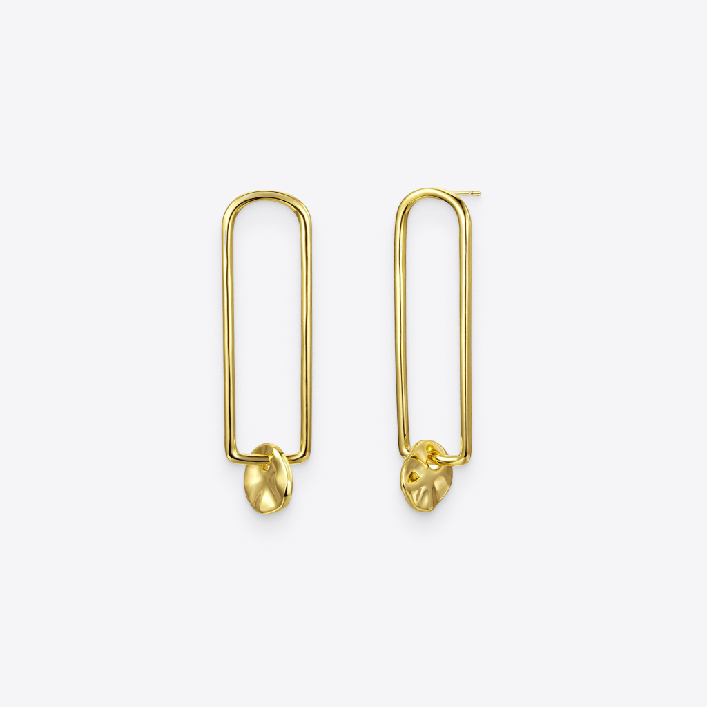 Sophisticated and glamorous, these oblong gold earrings will become your favourite jewel. The bizarre shape of the earrings together with its delicate details will add the ultimate modern touch to your regular look.