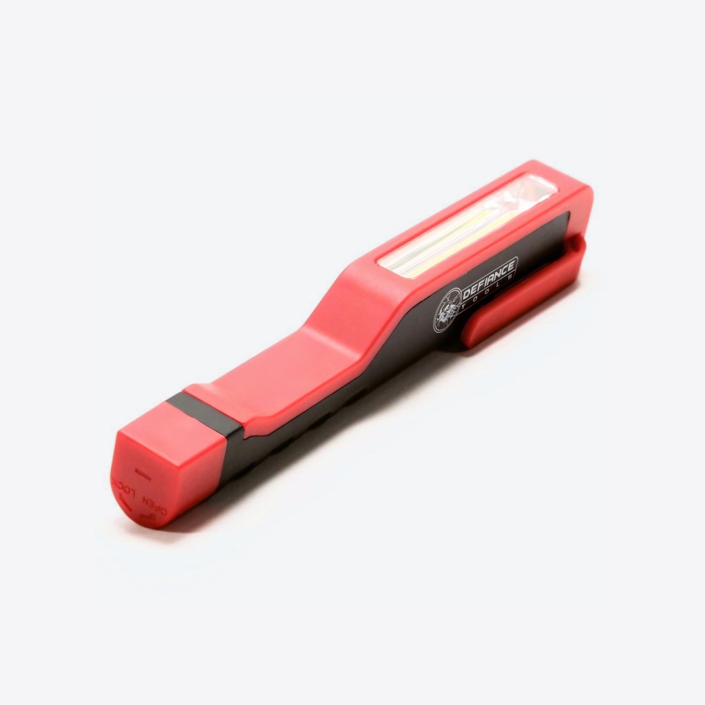 LED Pocket Light with a magnetic clip by Defiance Tools has a single 150 lumen COB LED with a handy rotating pocket clip to give you hands-free light.