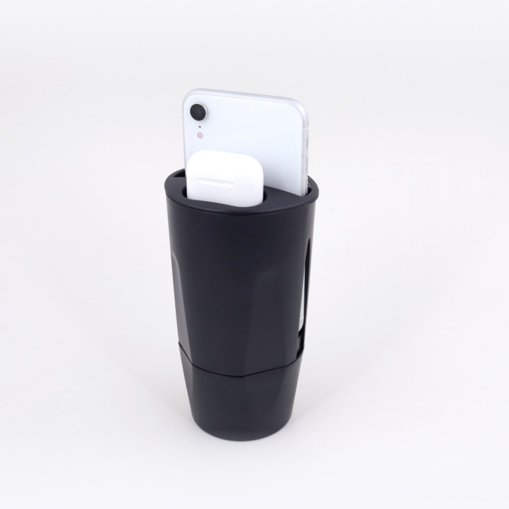 With the cup powered up, all you have to do is stick your smartphone into the phone-charging slot to charge up. AirPods work the same way (just put the case into the charging port). Note that your smartphone must support wireless charging, or else it will not charge. For AirPods, both wireless and traditional models will charge due to the presence of a charger plug.