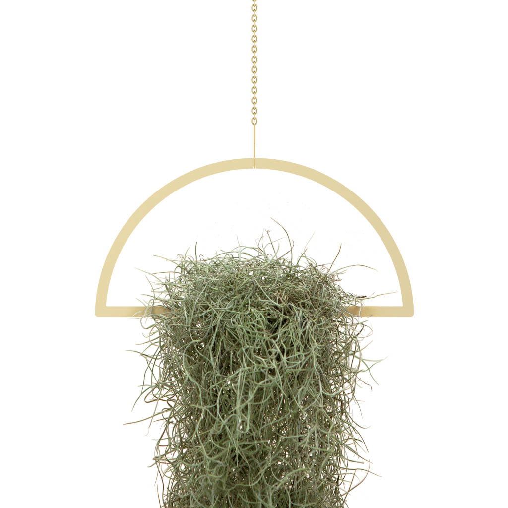 Our Gold Hanging Semicircle Plant Holder comes with a chain so you can let your plant soar like a planet in space.
