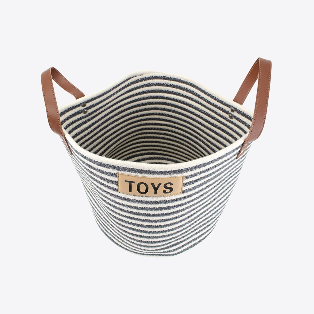The nice and neutral colors will make it fit nicely anywhere in your house. Best for larger pets so they can reach in the top and pick out their favorite toys!