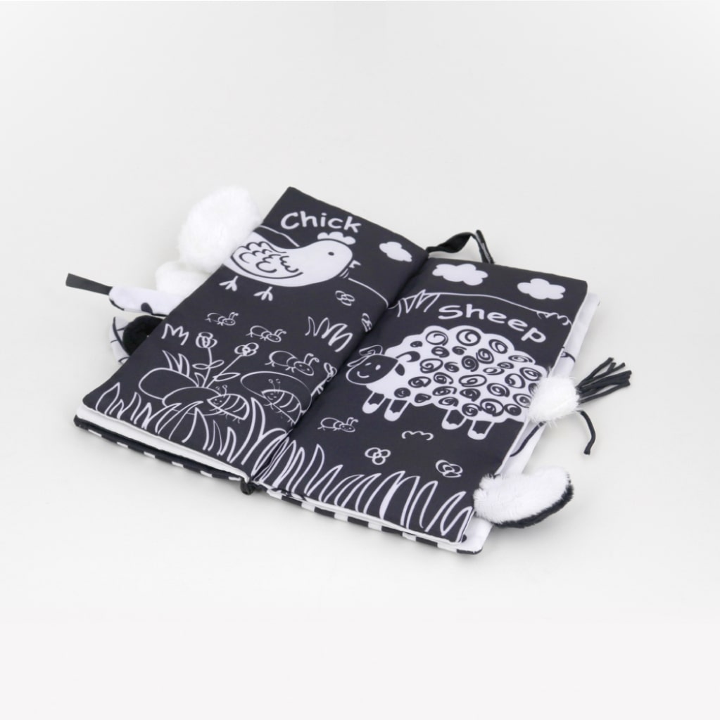 Let your baby physically feel and be attached to a fun story with this exquisite, unique storybook experience. Each page features recognizable animals with labels to allow your child to build his or her cognitive skills and animal recognition. The black-and-white nature of this storybook also aids in stimulating visual development.