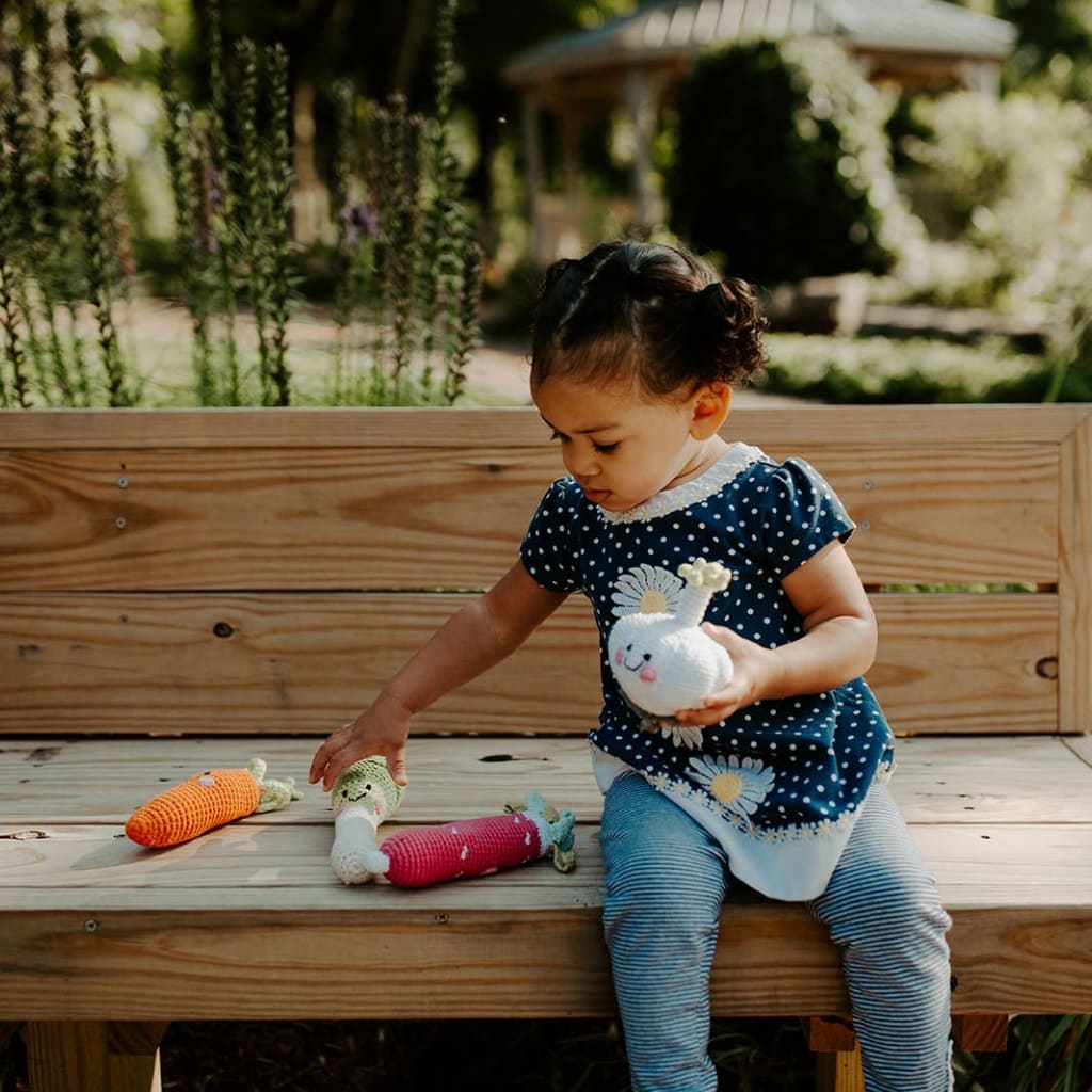 Once upon a time, a young woman from the UK fell in love with a young man from Bangladesh. Eventually they moved to Bangladesh and had a baby. As the new mother cuddled her tiny boy, she couldn't help but notice all of the young women streaming into the garment factories every morning. She was deeply saddened when she discovered that many of these woman had babies back home in their villages, left for months at a time with grandparents while the mom worked in the city. Lack of rural employment for women was separating families and putting the mothers in harmful situations and the babies without their mothers. So this new mom did what she could. She gathered a few women around her and taught them how to knit and crochet little dollies that could be sold in the Western markets. Samantha Morshed dreamed that this would grow and become an alternative source of income for women throughout Bangladesh. 15 years later, her dream is becoming a reality. More than 13,000 women are now employed making Pebble toys in their home village. They walk to work, taking their babies with them. There they sit together, yarn spilling onto their laps as they knit community and love together in each heirloom Pebble toy. Pebble was born out of a love for babies and their mothers.