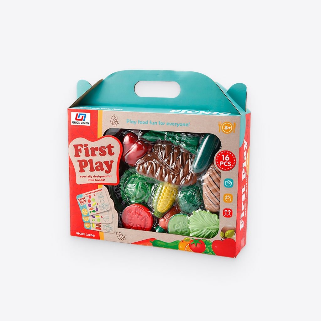 This food set is a great gift for any child. The toys are colorful, plump, realistic, texturedsuch a tease! Playing with the set will make the kid familiar with vegetables and colors. Let the artistic juices flow! Who knows, maybe theres a little Martha or Gordon at your house and you dont even know it?