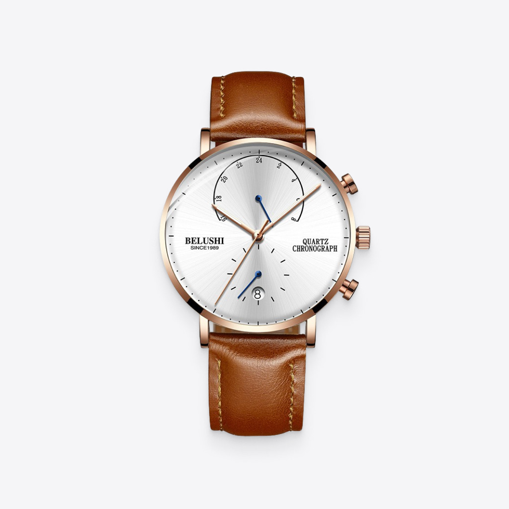 This watch has been produced with the best materials: authentic leather and stainless steel. Durability and ease in usage, nice to meet you!