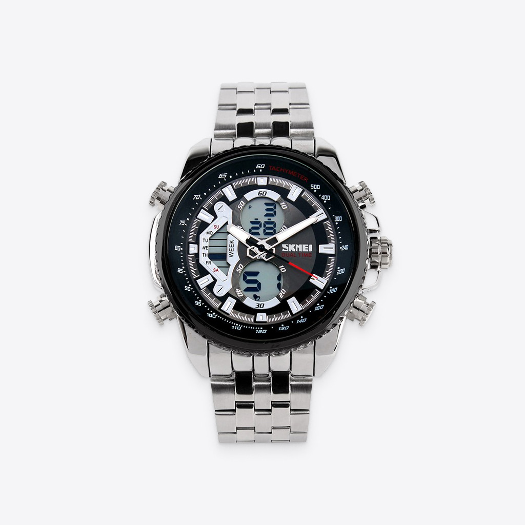 Smart-looking watch with a solid stainless steel case and an amazing quartz screen. Sports and fashion casual design with double time display, luxury plating metal case, elegant solid silver plated stainless steel band lead you to classic and business fashion. Its sleek design also reveals your good taste in fashion.