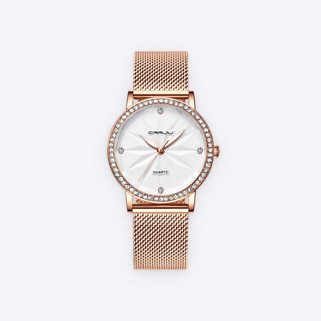 Case materials: alloy. A comfortable-to-wear stainless steel strap. A diamond-encrusted dial shining like the stars.