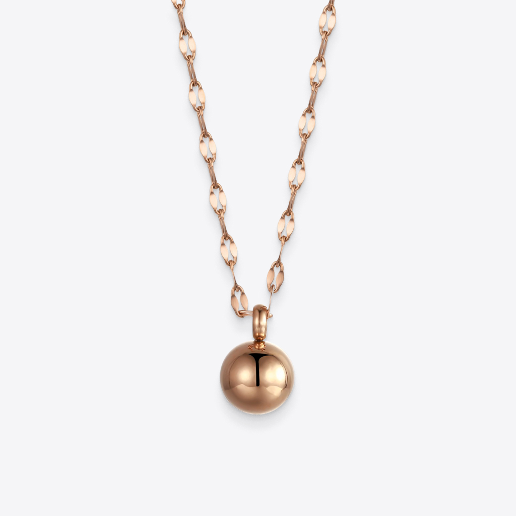 The Ball Pendant Necklace beautifully captures the spirit of modern girls. This rose-gold-colored necklace is a subtle way to make a sparkling statement.
