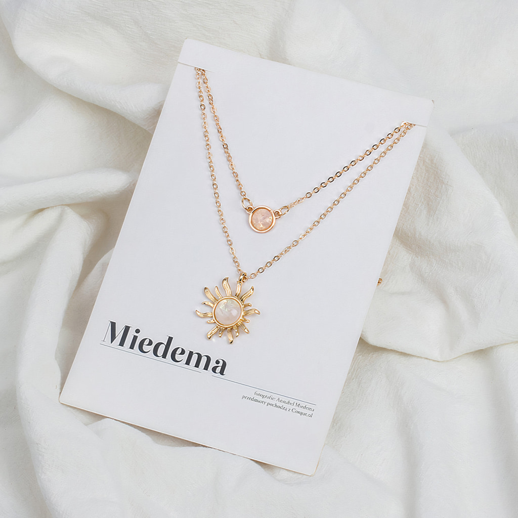 Jewelry materials: brass. Shape: a chain with a sun-shaped pendant. Color: golden, white.