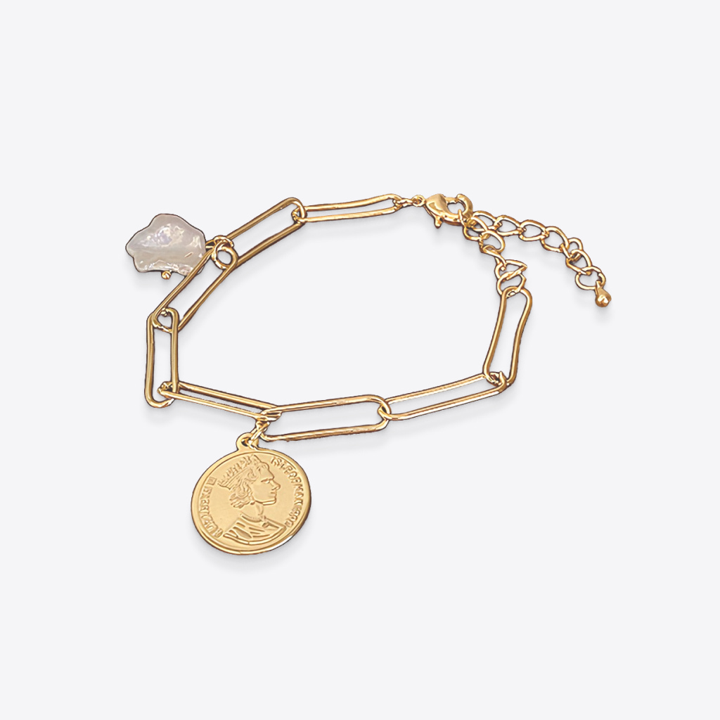 Timeless things appeal to everyone and what could be more timeless than a bracelet with a vintage coin and a pearl-like bead? Pearls symbolize perfection, purity, and love, while a coin stands for memory and longevity. An expressive gift for any occasion: engagement, wedding or birthday, this bracelet will convey your affection in a convincing and memorable way.