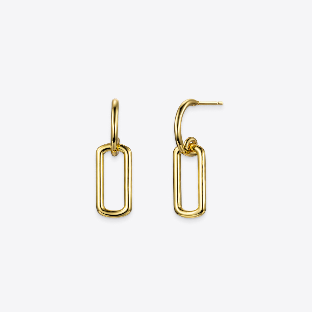 The rectangular golden earrings make a wonderful gift for any occasion. Giving your loved one these stunning earrings will show them your love and commitment. Any woman will feel beautiful and desired wearing this accessory. Besides, it can be enjoyed for a lifetime.
