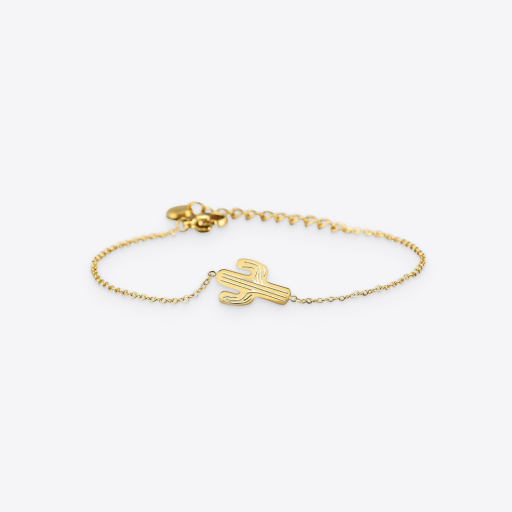 A golden bracelet carries a much deeper meaning than regular accessories. Enrich your style with this gold plated cactus bracelet and keep a lucky charm always right by your side.