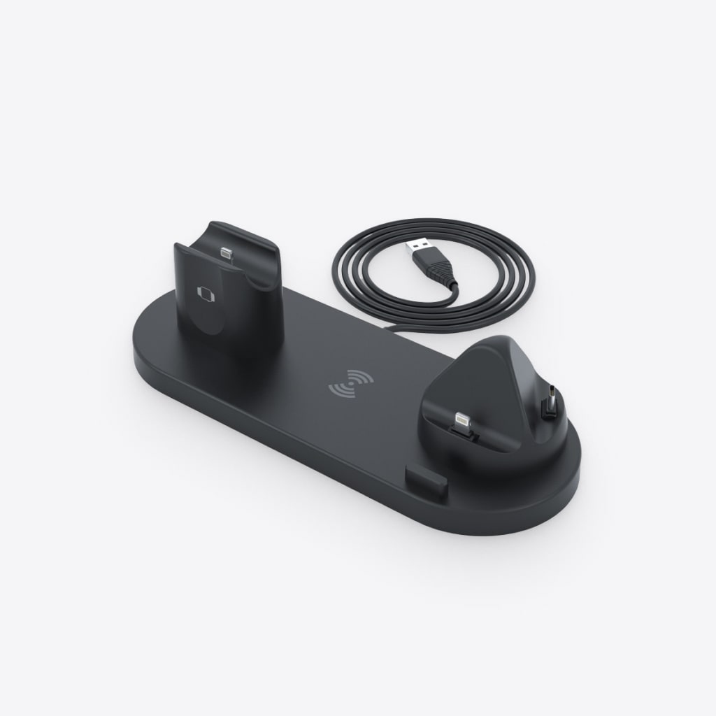 Charge your earbuds, smartwatch, phone, and other devices. The rotating holder has lightning, USB Type-C, and Micro USB connectors. Connect a USB 2.0 cable if you need it as well! You can charge up to 4 devices at once.