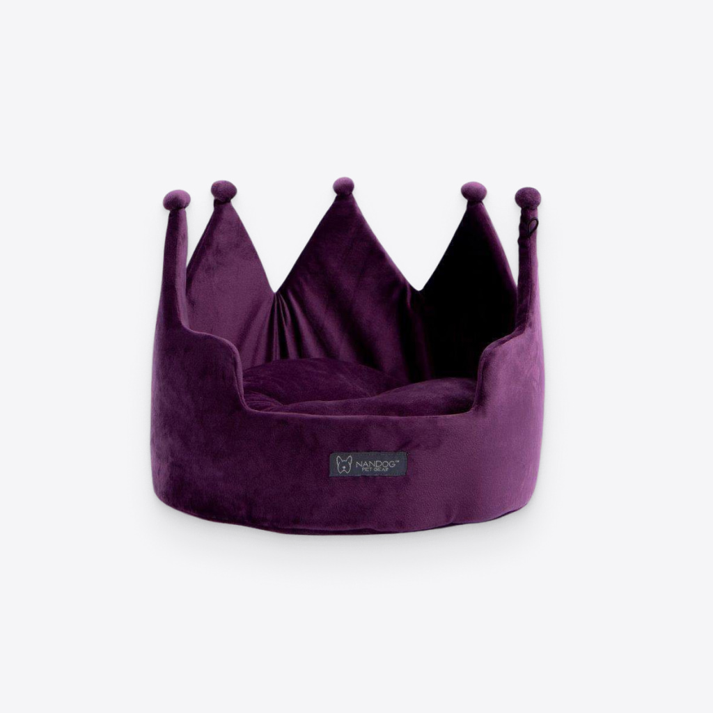 A unique and fun dog and cat bed design in the shape of a purple crown