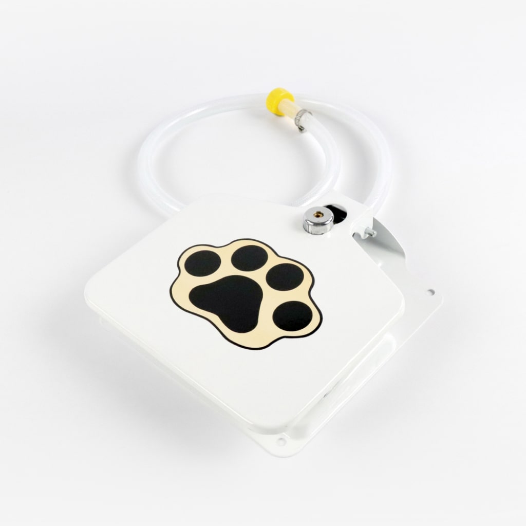 Teach your dog to step onto the printed-paw pattern of the water fountain to dispense water. Each purchase includes some training instructions you can follow to ease your pooch into using the fountain. With time, he or she will be stepping on the fountain pedal naturally for a sip of water!