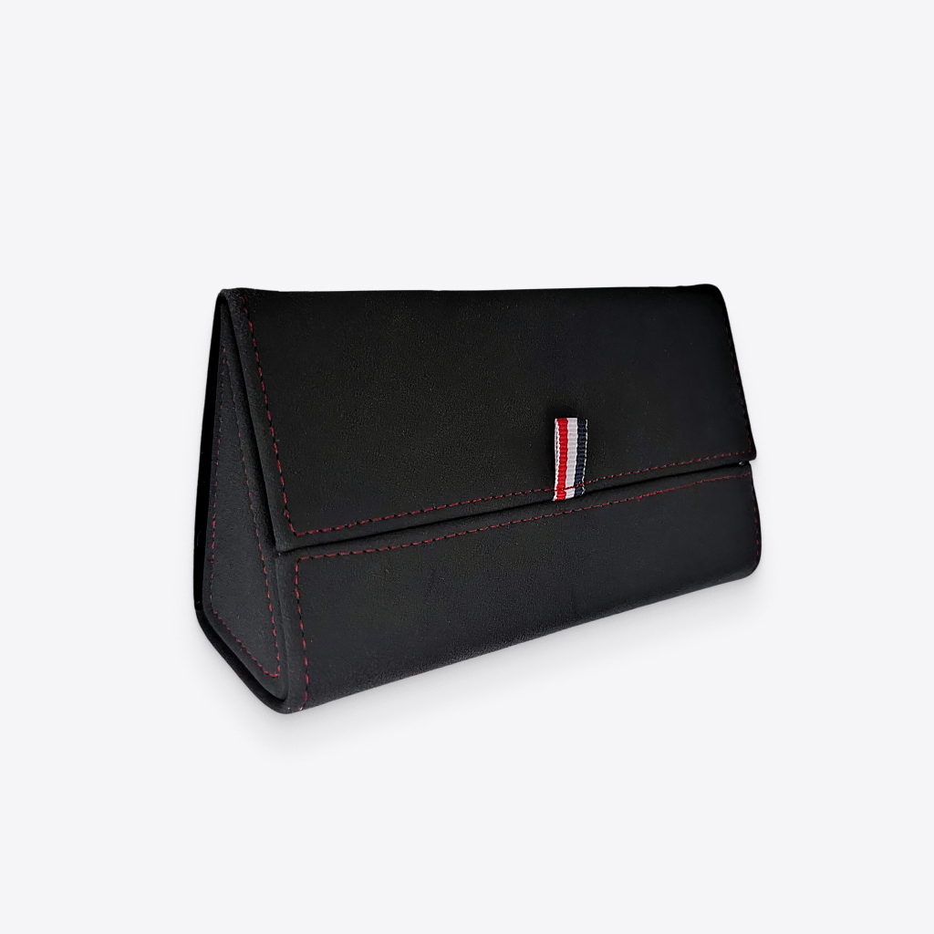 This triangular shape of this sunglass case ensures if you clip to a sun visor, that there is no blockage of your behind-the-wheel view, for safety and peace of mind.