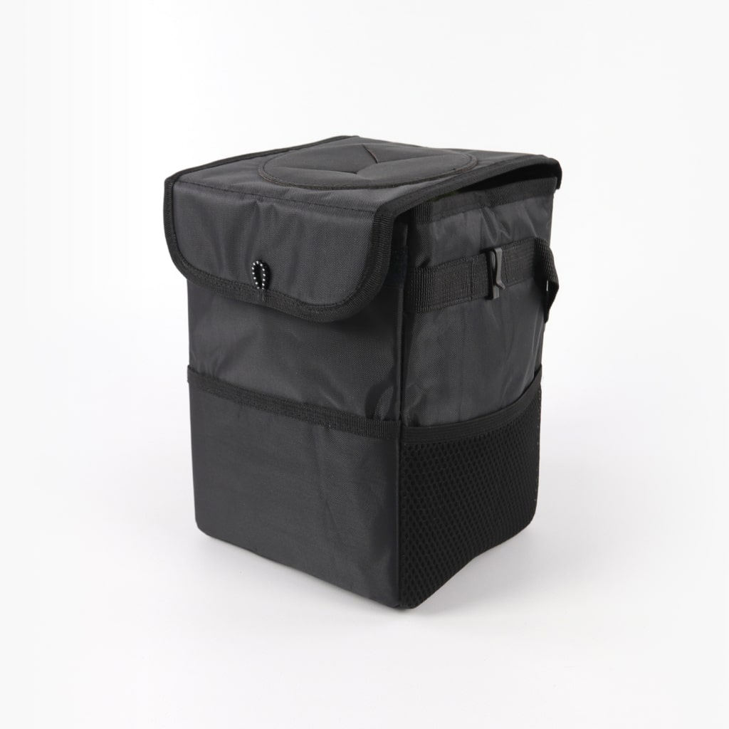 Crafted from quality waterproof oxford cloth, our auto trash can is an absolute handy accessory. Designed with two side pockets, a garbage bag hook, and a velcro closing seal, its sturdy and performance-driven to hold up to 1.23 gallons of trash. Plus, a push-seal trash lid helps block any odors from wafting out into the vehicle interior.